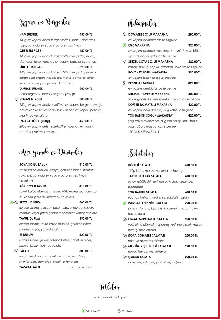 Sabah açık büfe kahvaltı alabilir, öğle ve akşam saatlerinde de menümüzdeki nefis yiyeceklerin keyfine varabilir, barımızda lezzetli kokteyllerimizi tadabilirsiniz. Vegan ve vejetaryen çeşitlerimiz mevcuttur.